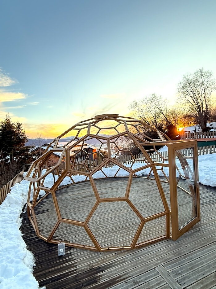 Ce dôme géodésique nid d’abeille s’inspire des structures hexagonales de la nature. Il marie courbes harmonieuses et haute technicité. Une solution parfaite pour si vous recherchez un espace unique, confortable, et durable en toutes saisons. Le dôme nid d’abeille vous aide à maitriser votre budget d’investissements par rapport à son cousin le dôme géodésique habitable formé de triangles.