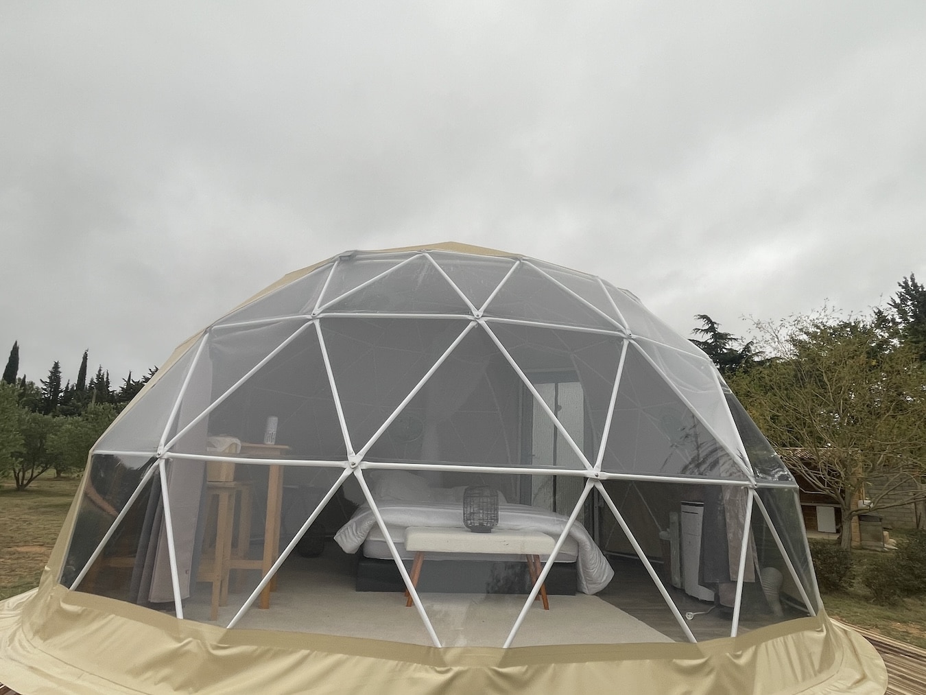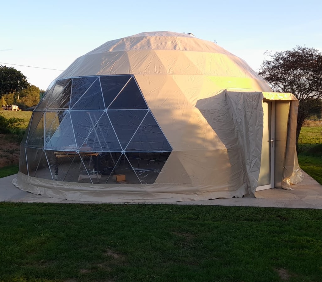 Dôme géodésique habitable de 5 à 8m de diamètre en PVC opaque et transparent.